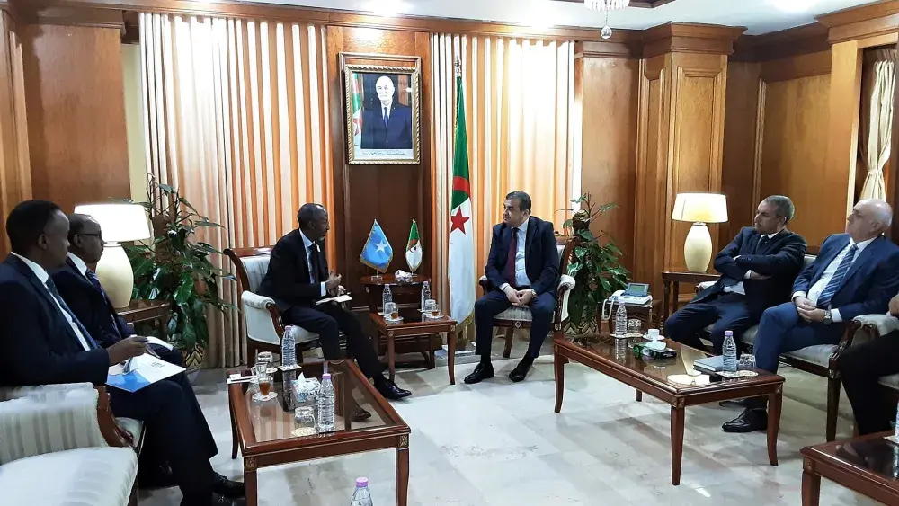 ويأتي هذا اللقاء ضمن الجهود المتواصلة التي تبذلها القيادة الصومالية لتوطيد علاقاتها مع الدول العربية والإفريقية الشقيقة، وترسيخ شراكات استراتيجية فعّالة، في انسجام مع رسالة رئاسية تعزز جسور التعاون الصومالي الجزائري، وتسهم في دفع عجلة التنمية وتعزيز العمل المشترك على المستويين الإقليمي والدولي.