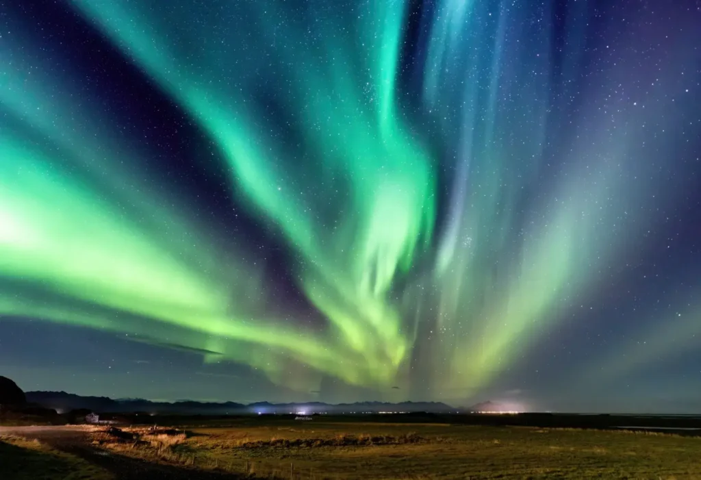 وحين تصطدم هذه الجسيمات بالمجال المغناطيسي للأرض، تتفاعل مع الغازات في طبقات الغلاف الجوي العليا، منتجةً الشفق القطبي بألوانه الخضراء والبنفسجية الخلابة.