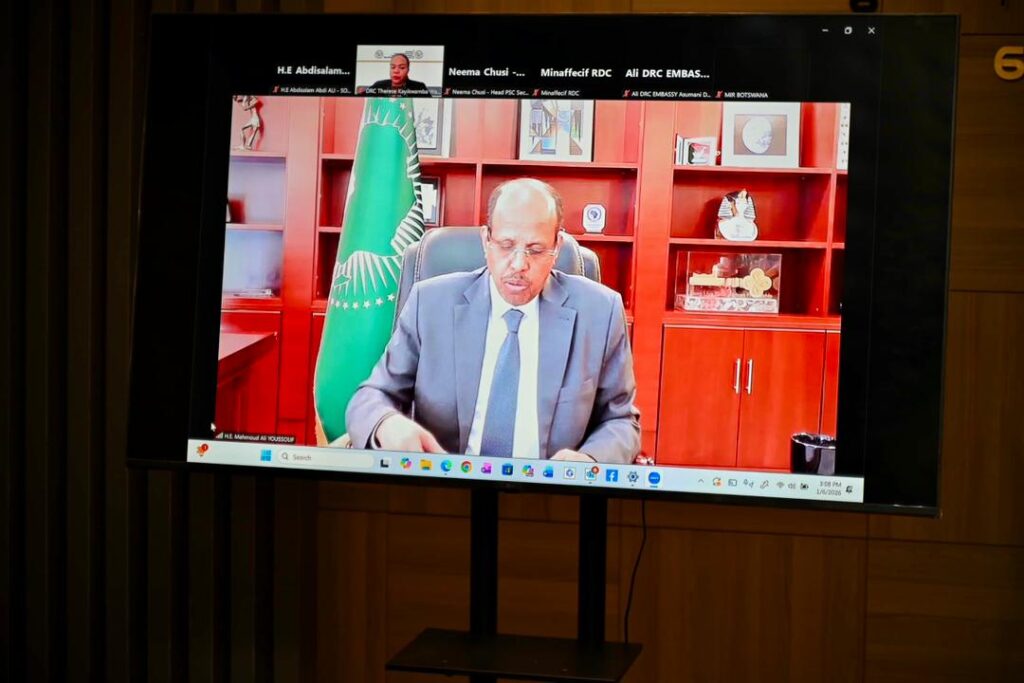 وجاء انعقاد الجلسة بناءً على طلب رسمي تقدمت به الحكومة الصومالية، استنادًا إلى المادة (7/س) من تفويض مجلس السلم والأمن، التي تخول المجلس النظر في الحالات التي تتعرض فيها سيادة الدول الأعضاء أو استقلالها الوطني للتهديد. وترأست الجلسة وزيرة خارجية جمهورية الكونغو الديمقراطية، تيريز فاغنر، بصفتها الرئيسة الدورية للمجلس. وزير الخارجية الصومالية يخاطب مجلس السلم والأمن الأفريقي.